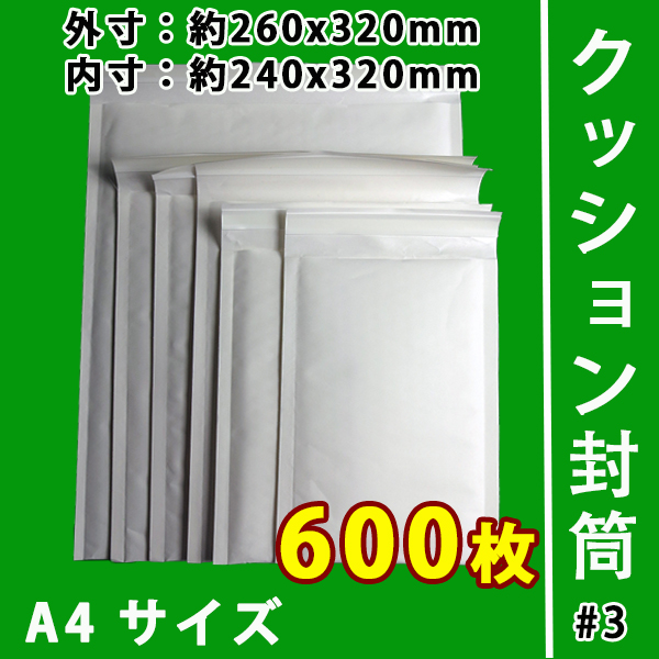 ★超お買い得★ → クッション封筒・緩衝材付き 600枚入り (#3) A4対応サイズ