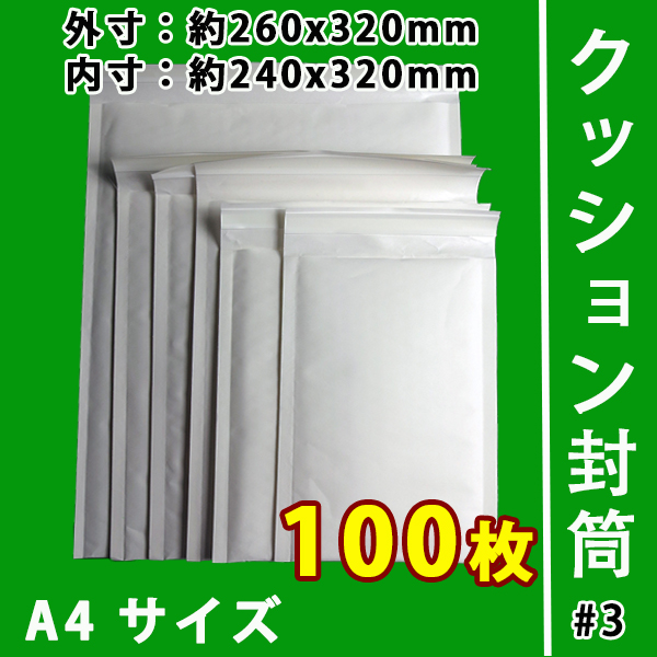 クッション封筒・緩衝材付き100枚入り (#3) A4対応サイズ