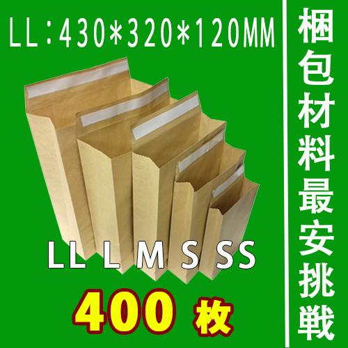 ★お買い得★ → 宅配便用角底袋・紙袋 LLサイズ(430*320*120)  厚手(約120g) 400枚入
